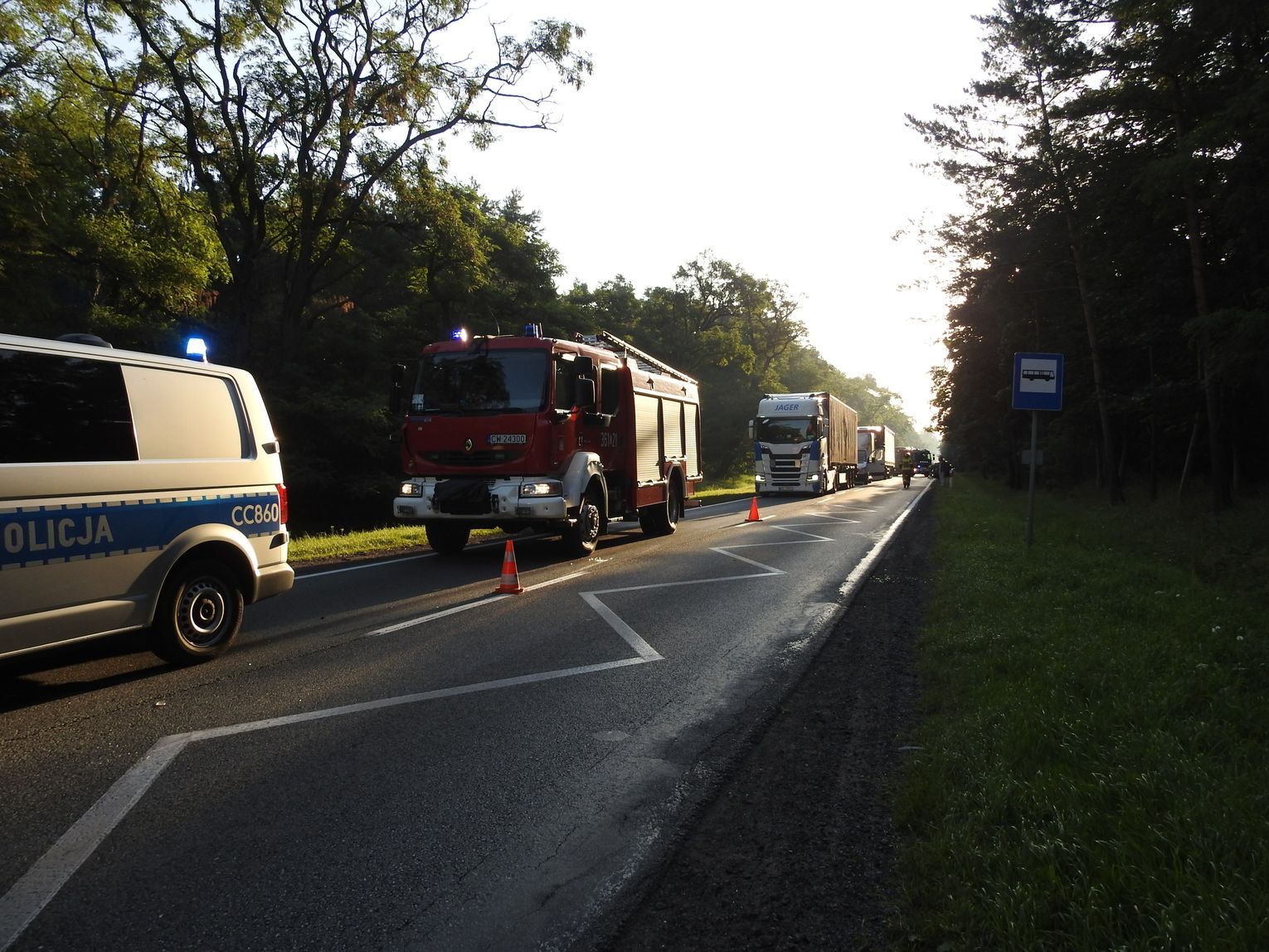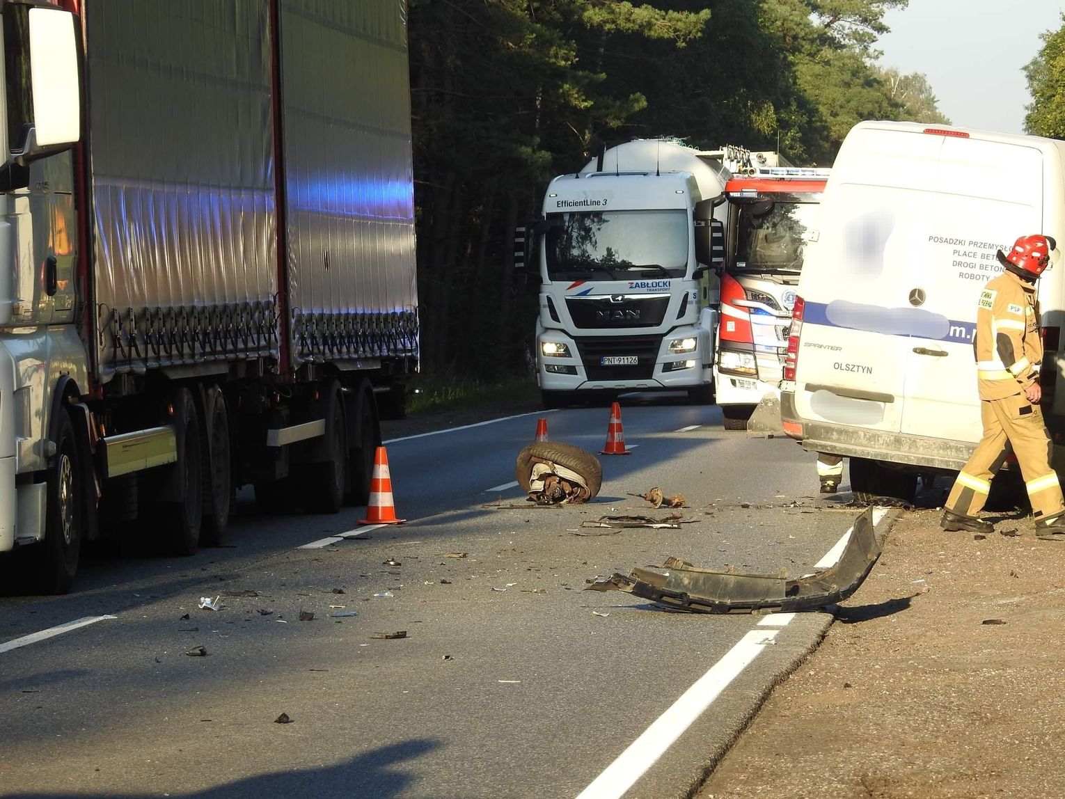 Zderzenie busa i osobówki na DK62 pod Włocławkiem. Droga zablokowana