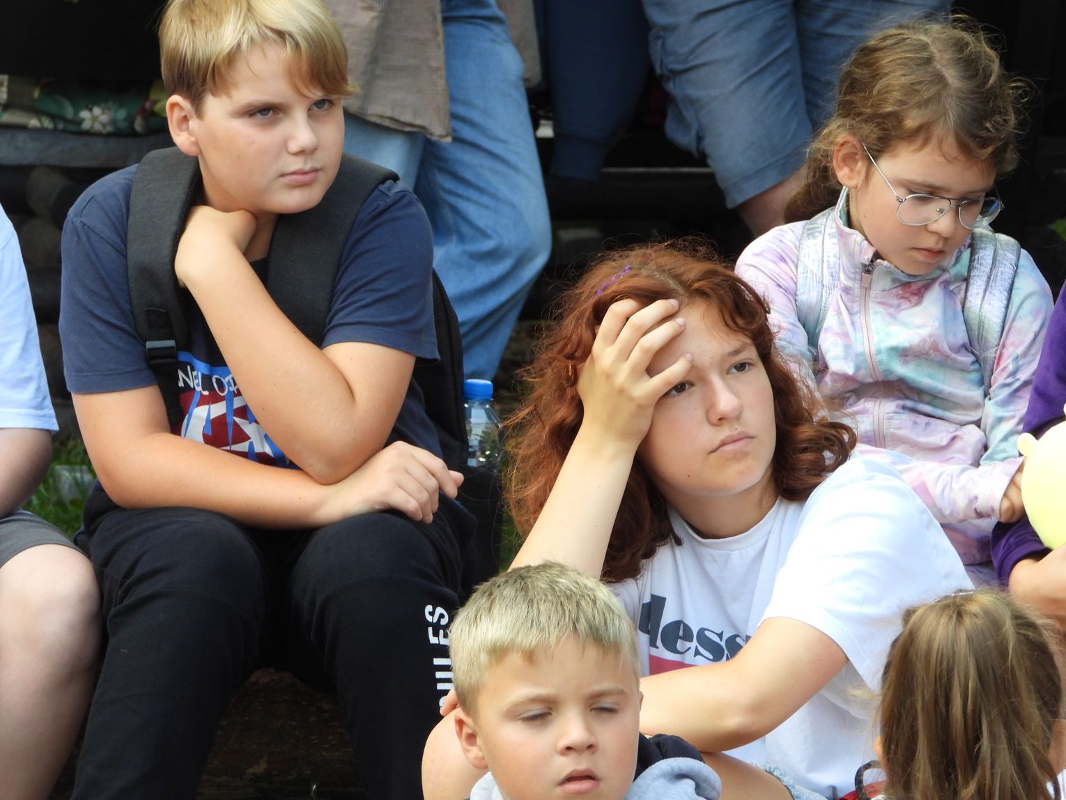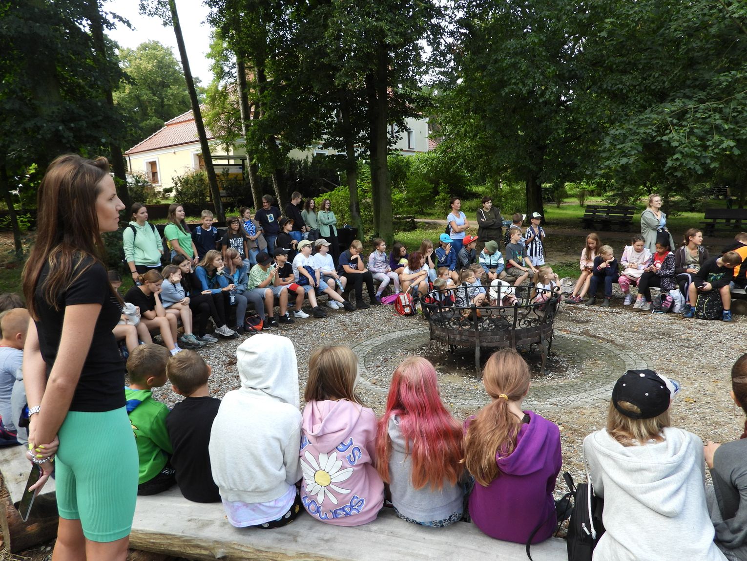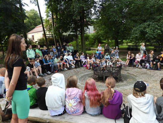 "Pierwszy dzień naszych półkolonii spędziliśmy w parku na Słodowie, gdzie odbyła się integracja i tworzyła się obrzędowość naszych drużyn. Każdego dnia spotykamy się w innym miejscu. Wczoraj byliśmy w parku linowym, dziś w Nadleśnictwie. W tegorocznych półkoloniach uczestniczy 78 osób. Są to dzieci w różnym wieku od sześciu do czternastu lat podzielonych na sześć grup, z których każda jest pod opieką innego wychowawcy." - powiedziała Natalia Wiankowska, kierowniczka półkolonii