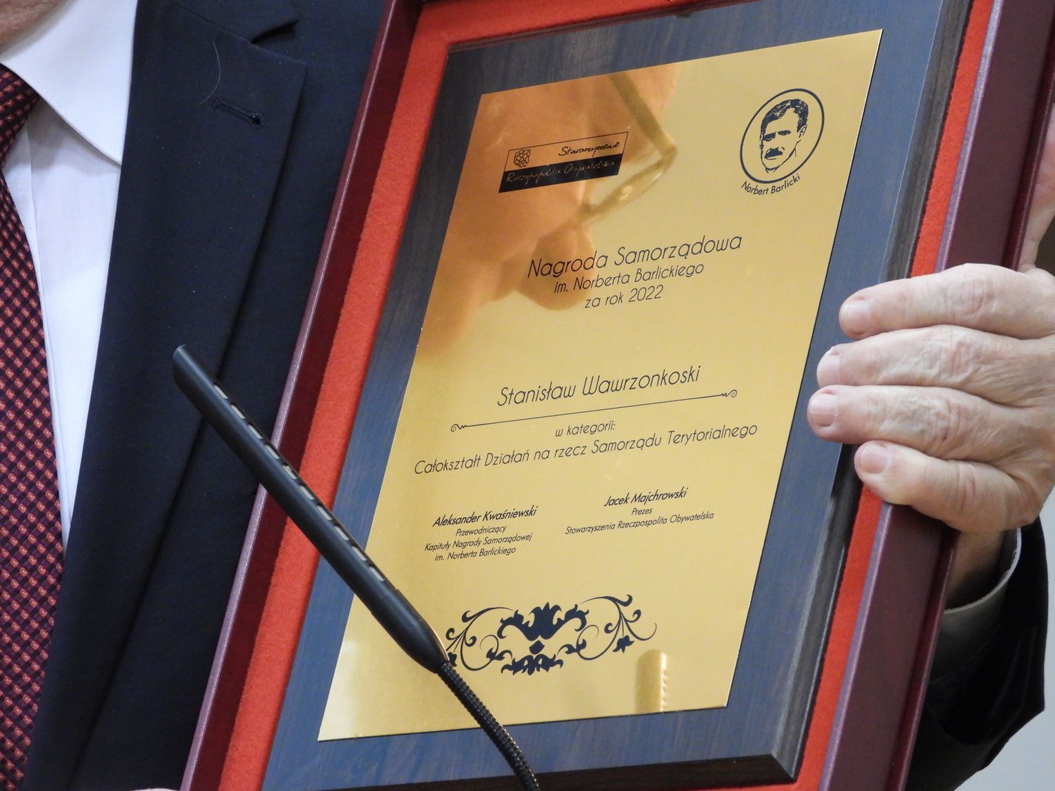 Nagrodę Samorządowca odebrał dziś Stanisław Wawrzonkoski, w kategorii Całokształt Działań na rzecz Samorządu Terytorialnego. Były Prezydent Włocławka urodził się w Ossowie w 1942 r. Pełnił funkcję sekretarza ds. rolnych KW PZPR, był pierwszym naczelnikiem gminy Włocławek, wójtem gminy i wicewojewodą włocławskim. Od 2002 r. (poza latami 2006-2010) zasiada w Radzie Miasta Włocławek.