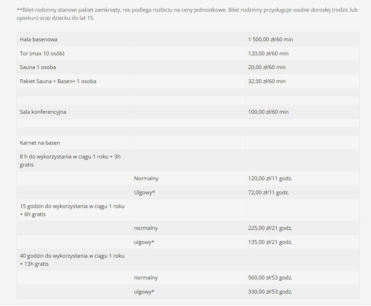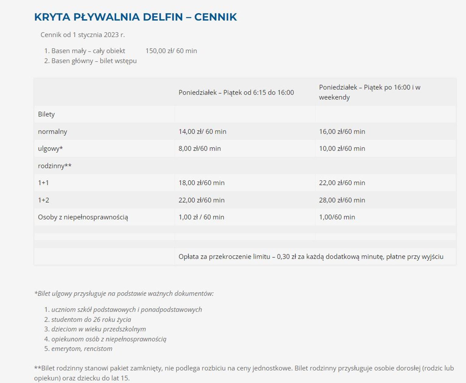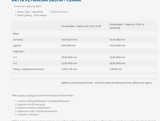 Takie same stawki obowiązują na krytej pływalni Delfin.