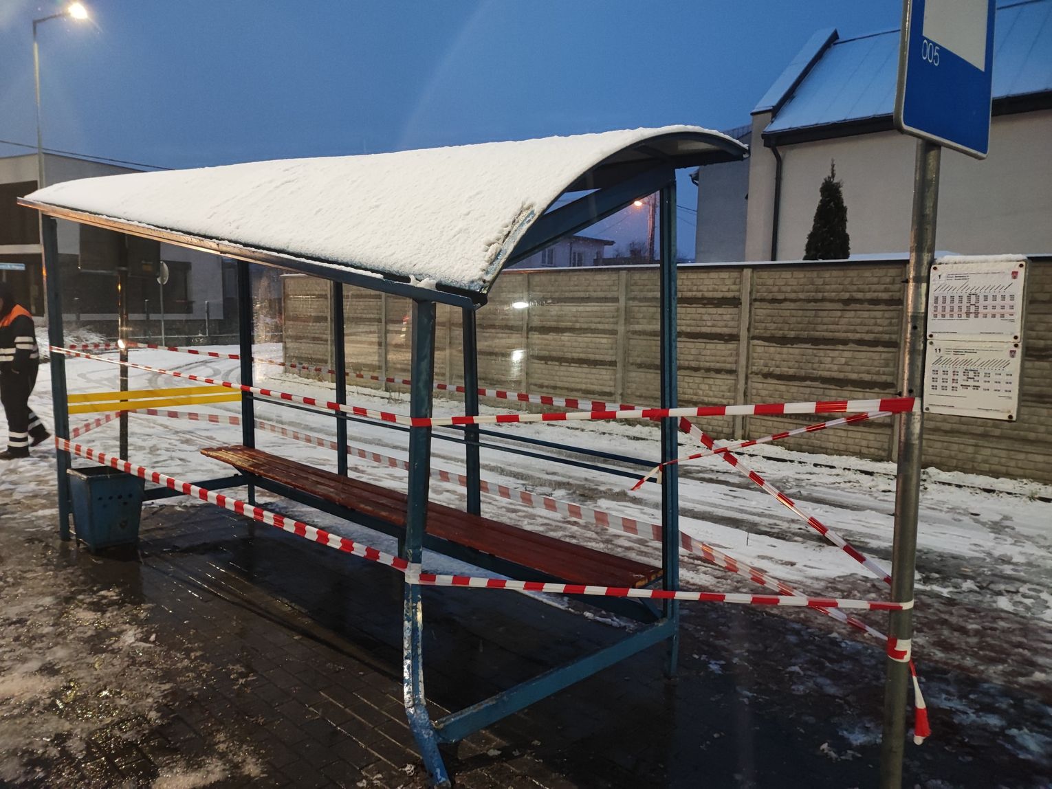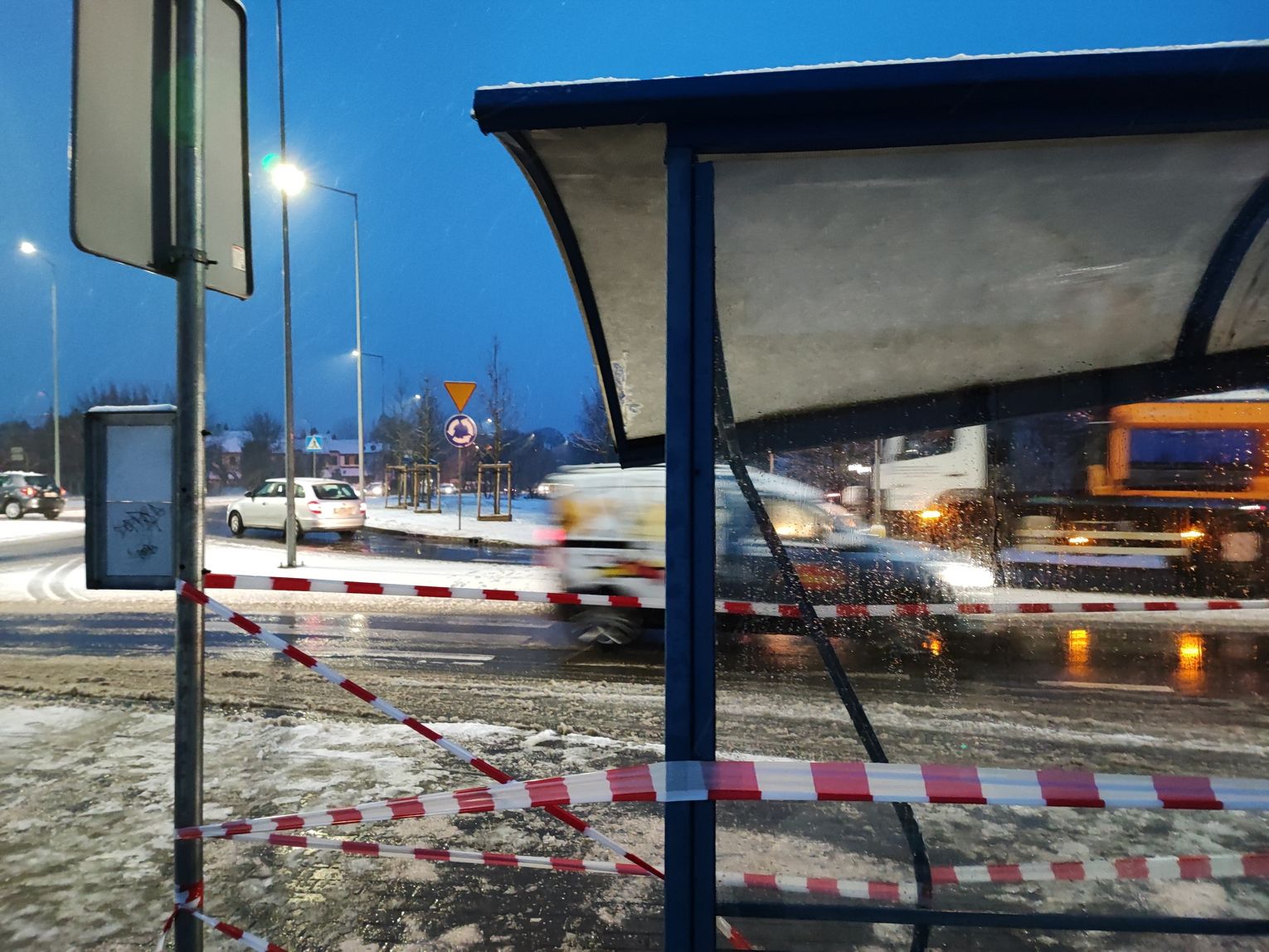 Ostatnie godziny w naszym mieście przyniosły opady śniegu. Ulice Włocławka stały się białe. Samochody i przechodnie poruszają się bardzo powoli. Doszło już do kilku zdarzeń drogowych. Na ulicy Kapitulnej przy rondzie im. Bartłomieja Kołodzieja samochód osobowy uderzył w wiatę przystankową. Służby miejskie owinęły przystanek biało-czerwoną taśma ostrzegawczą.