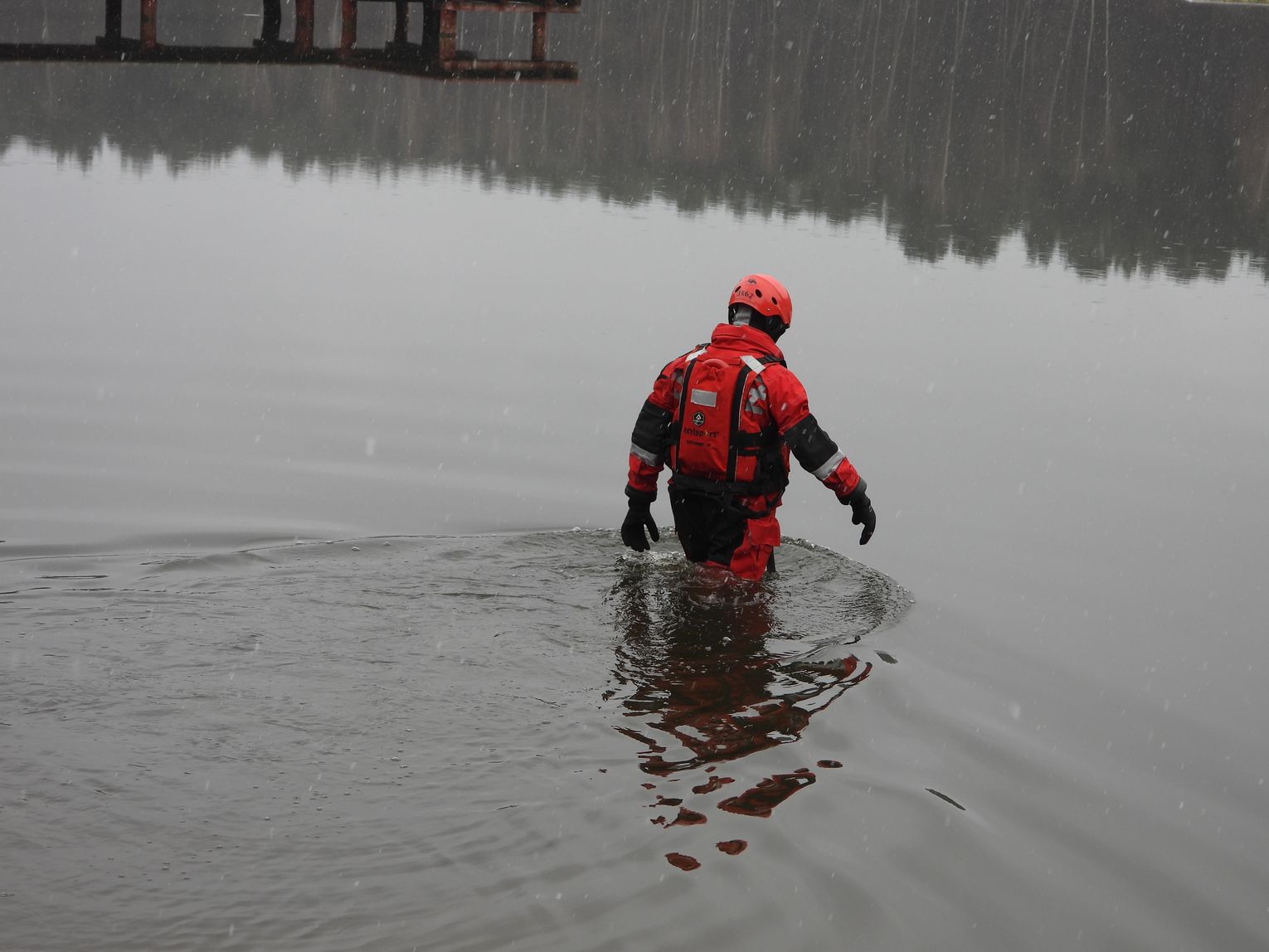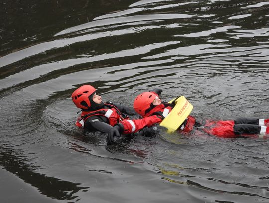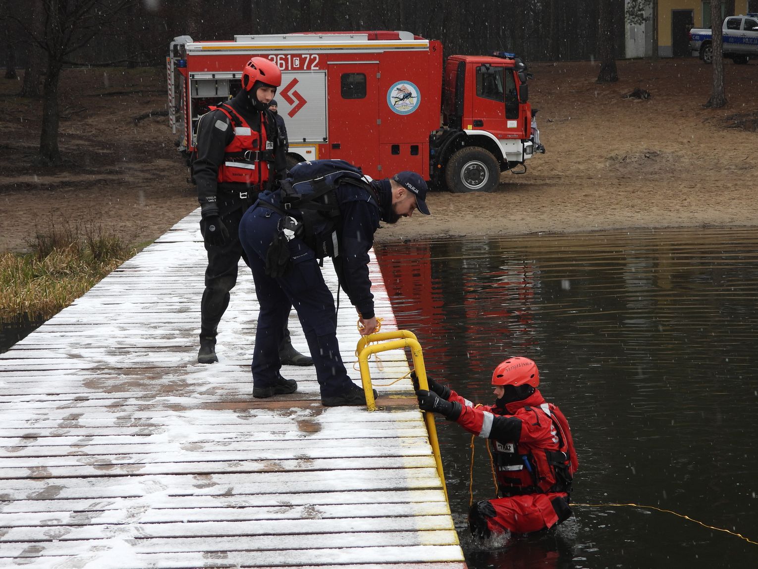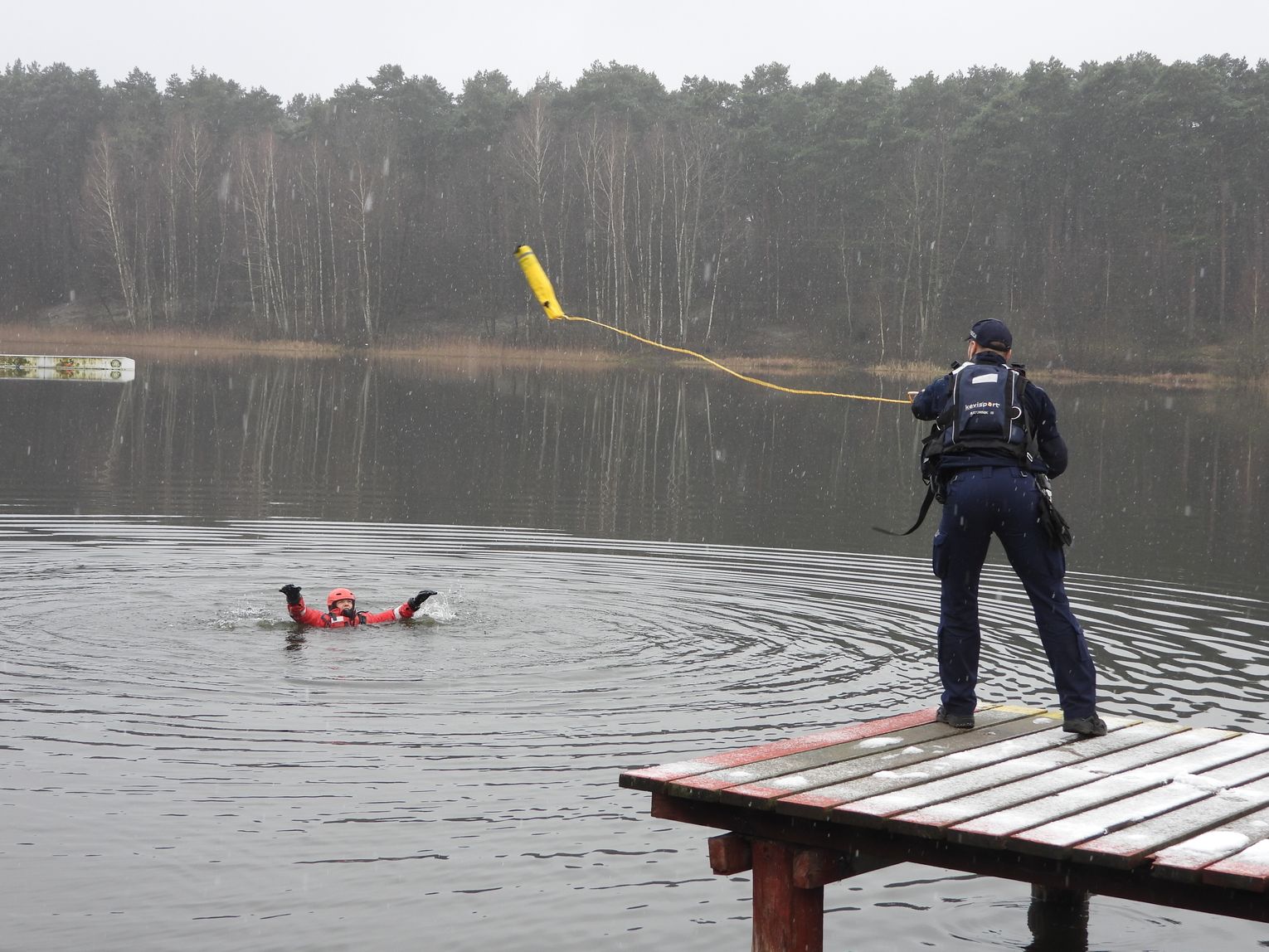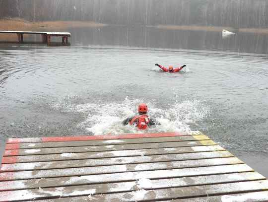 "Starajmy się przekazać osobie, która jest w przeręblu, aby spróbowała się sama wydostać. Pomóc możemy podając szalik czy jakaś dłuższą gałąź i w ten sposób próbować wyciągnąć taką osobę. Jeśli wchodzimy na lód by komuś pomóc pamiętajmy, żeby robić to płasko, czołgając się, tak abyśmy sami dla siebie nie stworzyli zagrożenia." - powiedział mł. bryg. Mariusz Bladoszewski