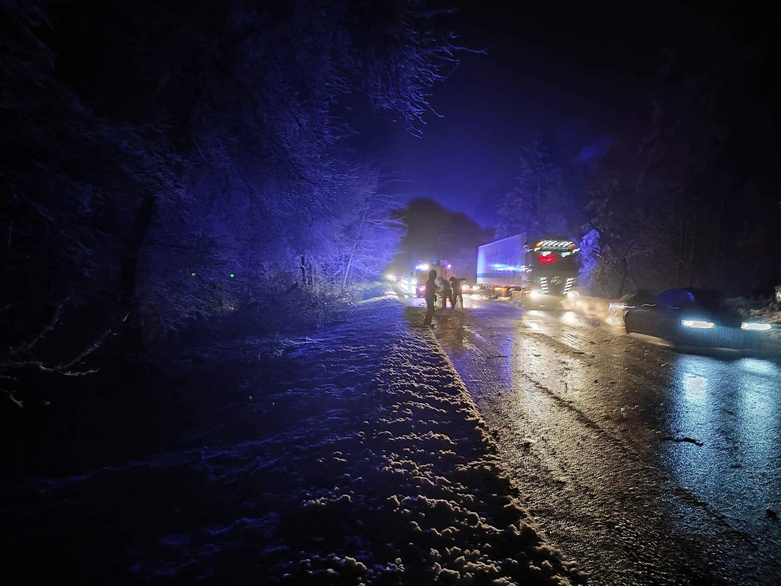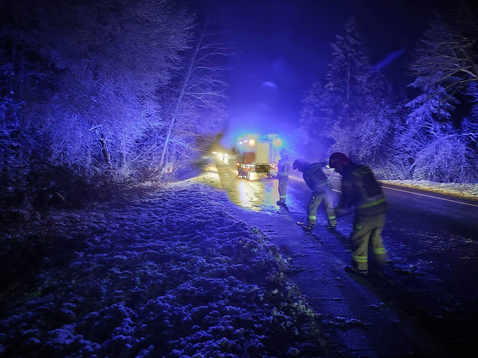 Dzisiejsze obfite opady śniegu to nie tylko zmora kierowców usiłujących nie wpaść w poślizg. To także łamiące się drzewa i konary pod ciężarem mokrego śniegu. Na trasie Włocławek-Kowal około godz. 17.00 na wysokości wjazdu na jezioro Wikaryjskie na drogę runęło drzewo. Na miejscu pracowali strażacy z Państwowej Straży Pożarnej we Włocławku, którzy przy pomocy piły mechanicznej pocięli drzewo i uprzątnęli z drogi. Ruch był zablokowany, ale na ten moment odbywa się już płynnie.