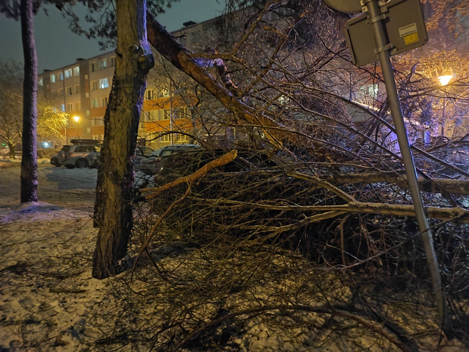 Około godziny 19:00 straż pożarna z Jednostki Ratowniczo-Gaśniczej nr 1 we Włocławku została zadysponowana na ulicę Wesołą. Konar drzewa złamał się, najprawdopodobniej pod ciężarem śniegu i spadł na zaparkowany samochód osobowy. Nieoficjalnie dowiedzieliśmy się, że właściciel Fiata Tipo czeka na policję.