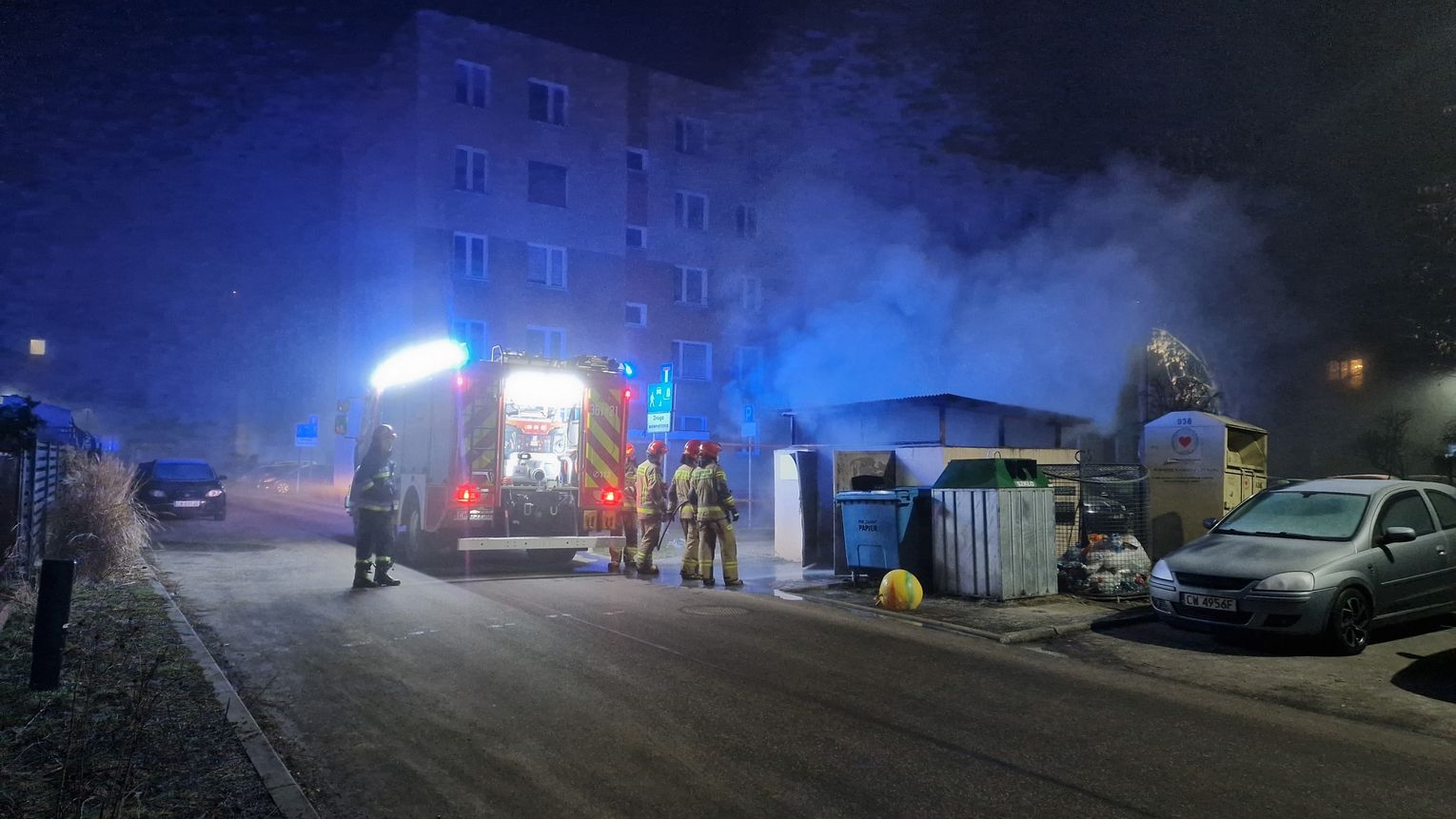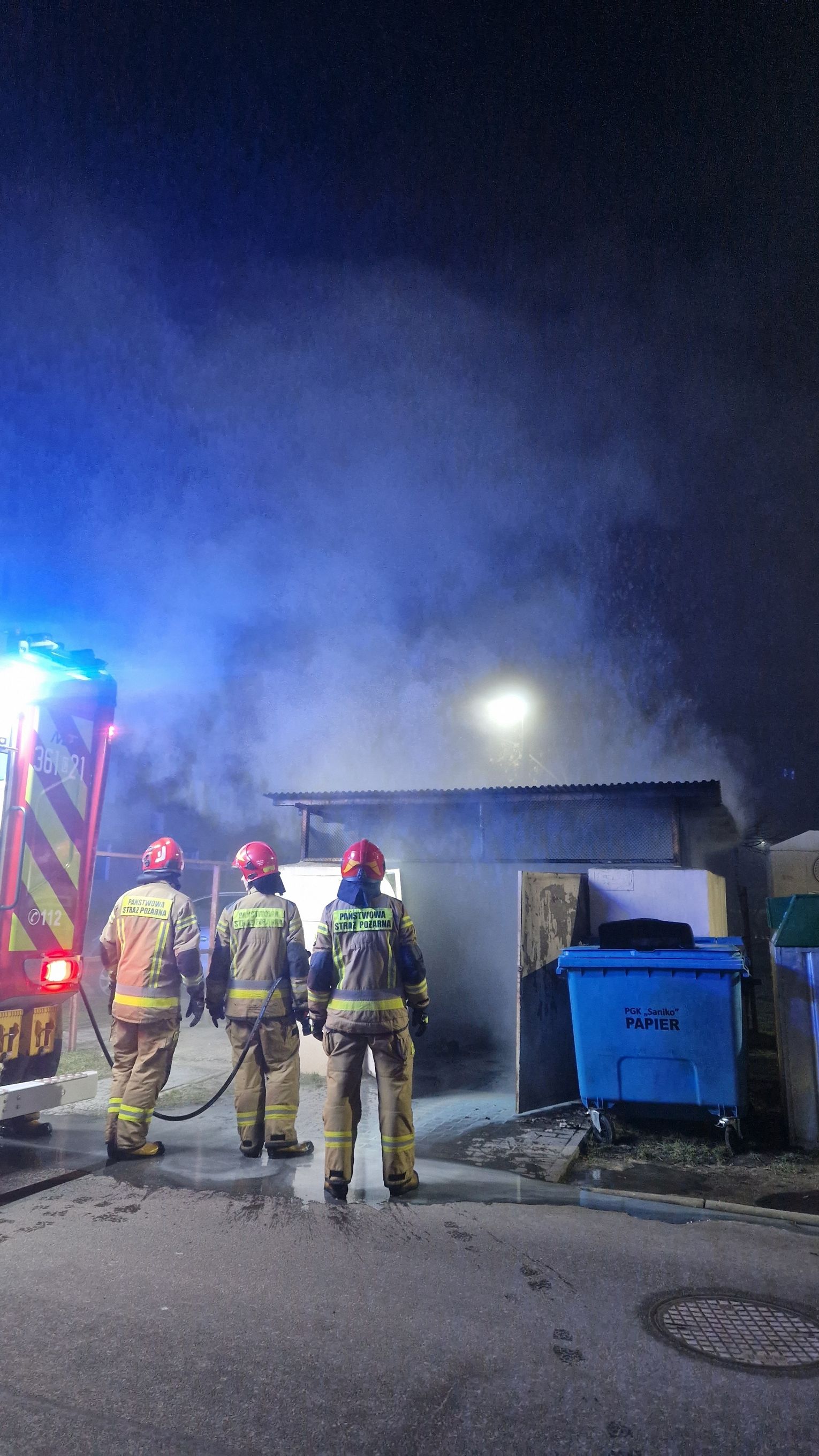 "W sumie mieliśmy pięć pożarów śmietników. Zaczęły się o godzinie 1:30. Do godzin porannych strażacy gasili pożary śmietników przy ulicy Kolskiej, Broniewskiego, Dziewińskiej, Wienieckiej i Smolnej. Największe straty były przy ulicy Smolnej 10, ponieważ w pobliskim budynku wentylacja zaciągnęła dymy pożarowe do magazynu sklepu i klubu fitness, gdzie zadziałała instalacja przeciwpożarowa." - powiedział mł. bryg. Mariusz Bladoszewski, oficer prasowy KM PSP Włocławek