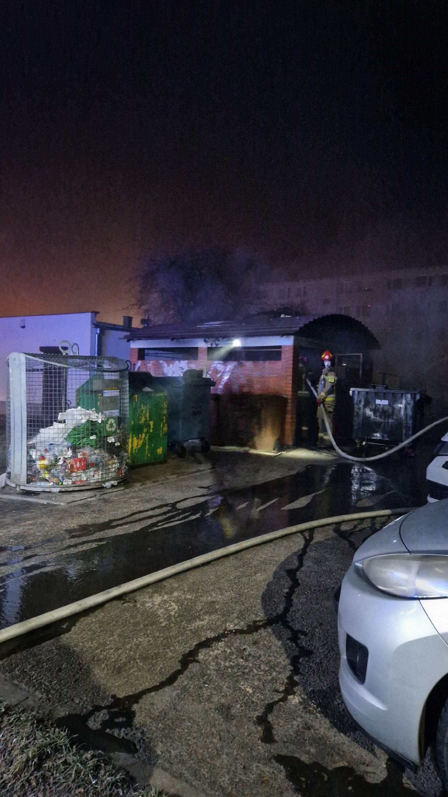 Sprawna akcja strażaków nie pozwoliła ogniowi rozprzestrzenić się na zaparkowane w pobliżu pergoli pojazdy. Więcej informacji po skontaktowaniu z rzecznikiem