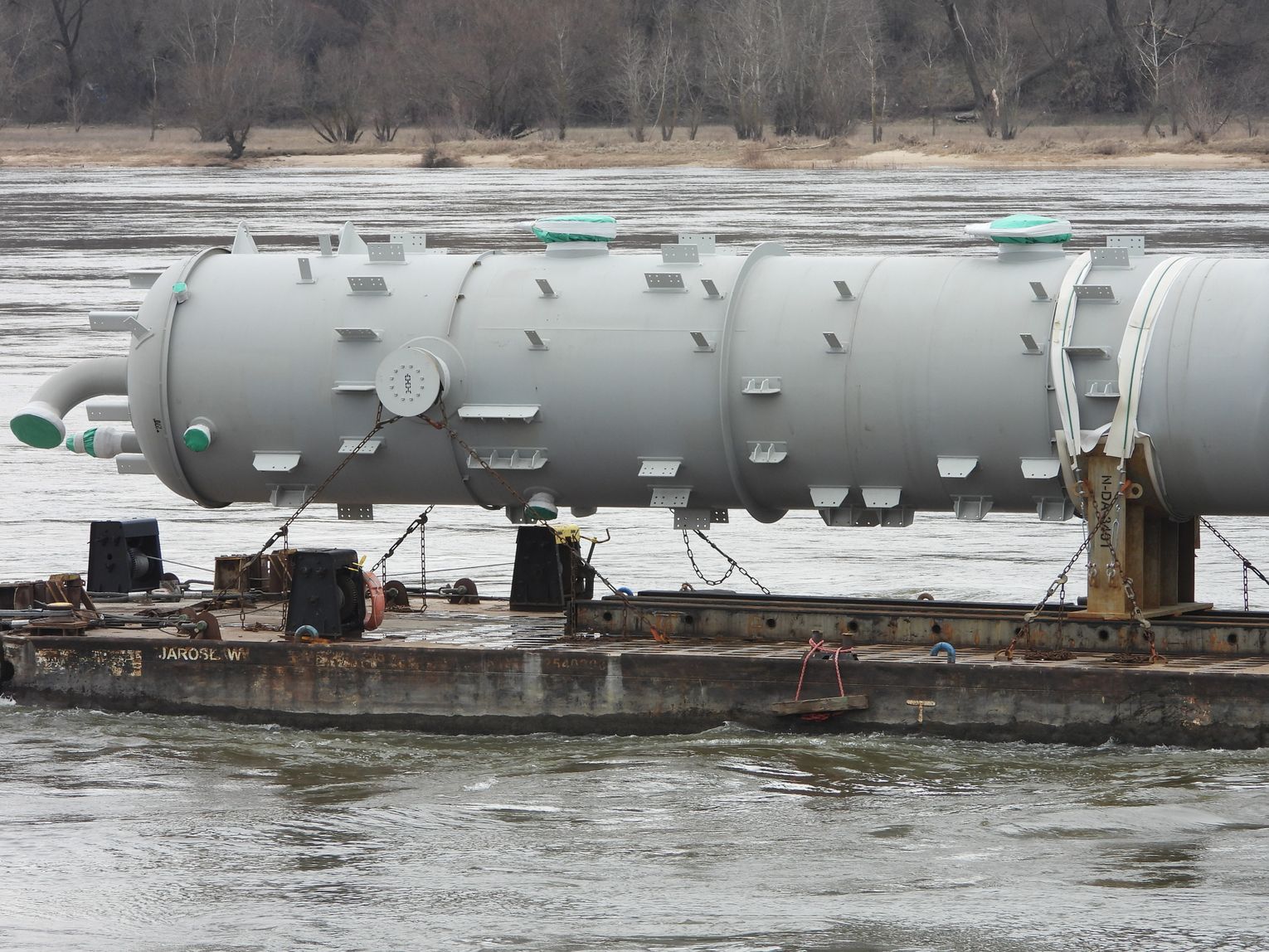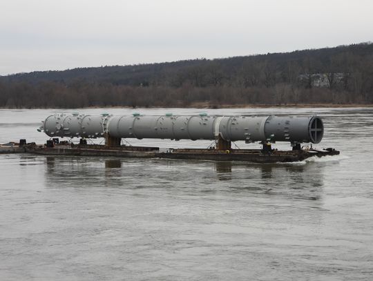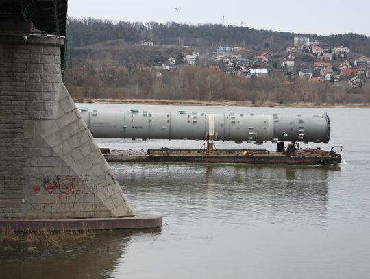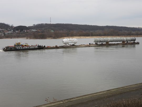 Od kilku tygodni włocławianie obserwują wzmożony ruch na Wiśle. Przez najdłuższą polską rzekę regularnie płyną barki transportujące wielkogabarytowe ładunki. Konwoje rozpoczęły się w styczniu. Jak już wcześniej informowaliśmy, ogromne elementy pochodzą z Azji. Ich droga przez Wisłę kończy się w Płocku, a dokładnie do Orlenu. Transportowane przez pchacze elementy służą do budowy instalacji Olefin III. Na nabrzeżu wiślanym w Płocku został zamontowany specjalny dźwig, który umożliwia rozładunek barek.