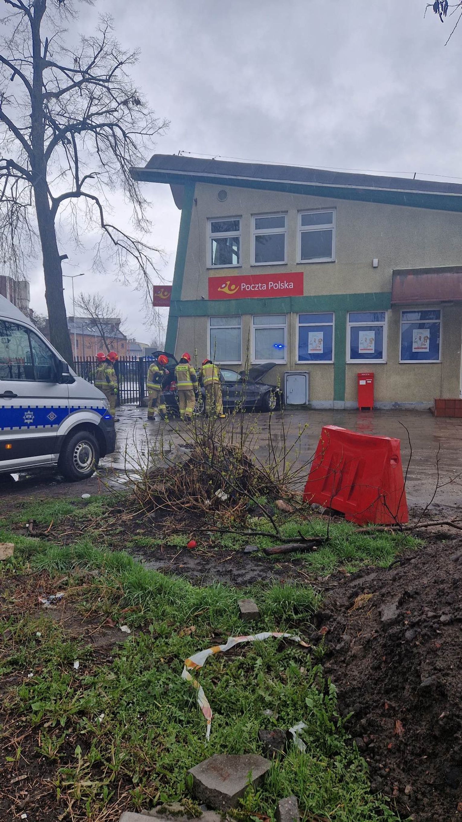 Około godziny 16:30 samochód osobowy uderzył w budynek poczty przy ulicy Okrzei w pobliżu dworca. Na miejsce przyjechały dwa zastępy straży pożarnej oraz Zespół Ratownictwa Medycznego. Czynności wyjaśniające prowadzą policjanci z Wydziału Ruchu Drogowego. Nie ma utrudnień w ruchu.