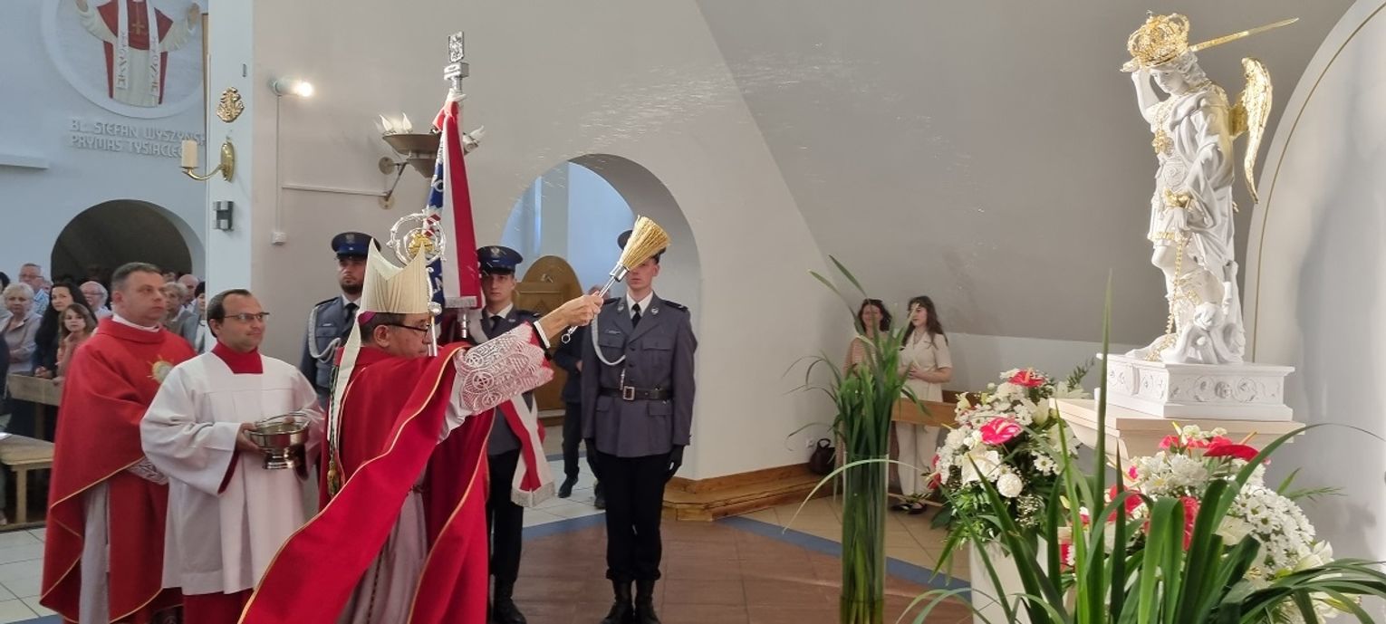 Funkcjonariusze i pracownicy Komendy Miejskiej Policji we Włocławku, korzystając z zaproszenia swojego Kapelana księdza Sebastiana Osińskiego, wzięli udział w uroczystości wprowadzenia do parafii figury św. Michała Archanioła z Groty Objawień na Górze Gargano we Włoszech. Święty Michał Archanioł jest, między innymi, patronem policjantów.
