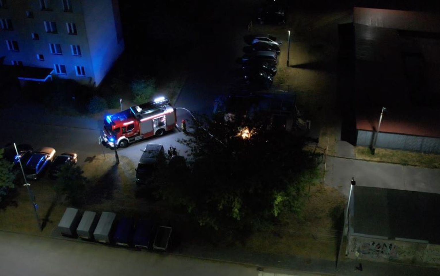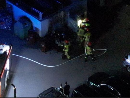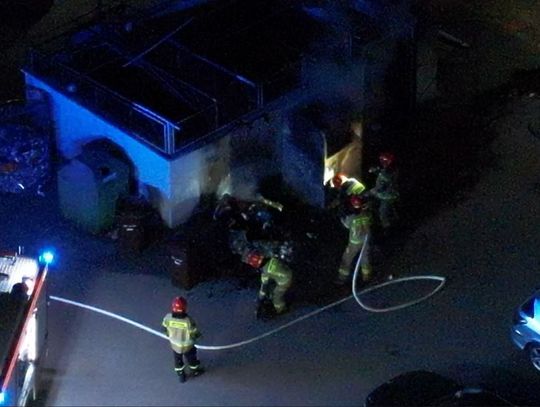 Pożar pojemnika na tekstylia, aby ugasić ogień strażacy musieli go przeciąć