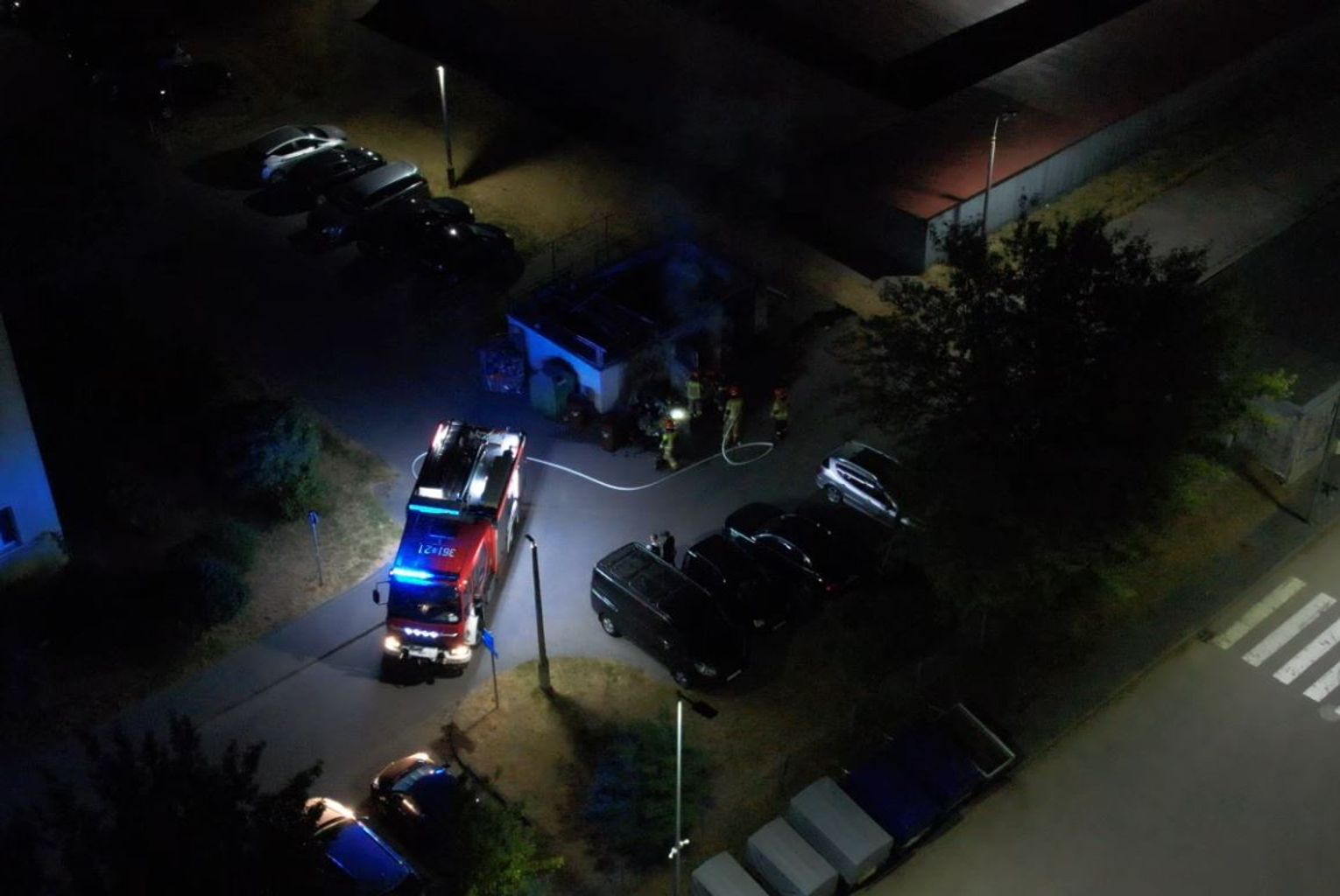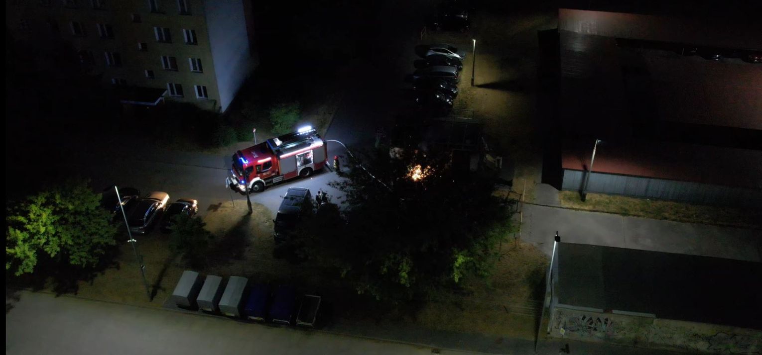 Dzisiejszej nocy doszło do pożaru pojemnika na tekstylia ulokowanego przy wiacie śmietnikowej na ul. Gniazdowskiego. Ugaszenie zgromadzonej w blaszanym pojemniku odzieży było utrudnione ze względu na jego konstrukcję. Strażacy przy użyciu piły do cięcia metalu "otworzyli" kontener i dopiero wówczas pokazał się ogień, który można było ugasić. To kolejny pożar w tym miejscu. W styczniu tego roku na fali pożarów pergoli śmietnikowych niemalże doszczętnie spłonęła wiata.. Wówczas spaleniu uległo sześć kontenerów w środku i trzy na zewnątrz. W wyniku wysokiej temperatury uszkodzeniu uległa także konstrukcja pergoli śmietnikowej. Artykuł i zdjęcia TUTAJ