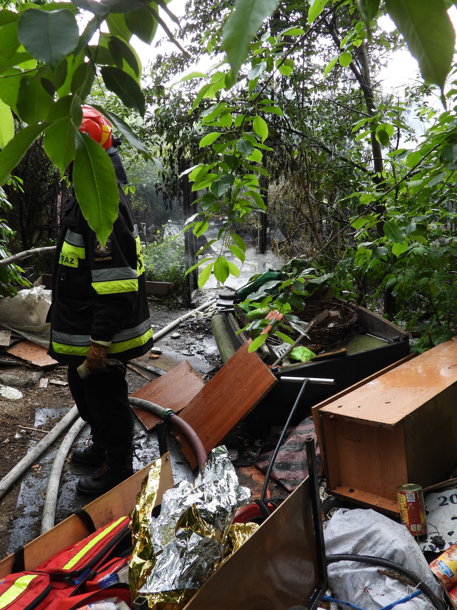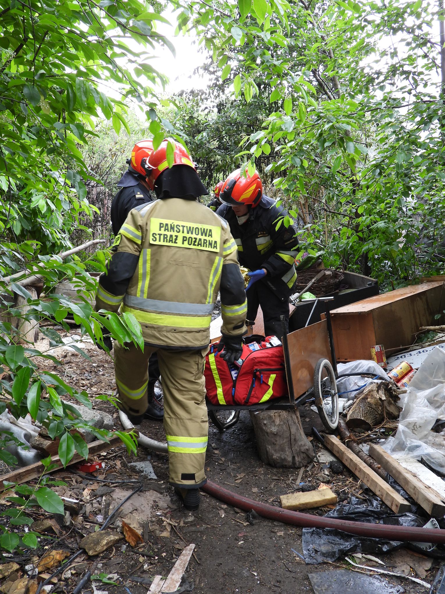 Mężczyzna został opatrzony na miejscu w ramach pierwszej pomocy. To on poinformował strażaków, że w chwili wybuchu pożaru na miejscu znajdowało się kilka osób, ale wszyscy zdążyli opuścić prowizoryczne schronienie.