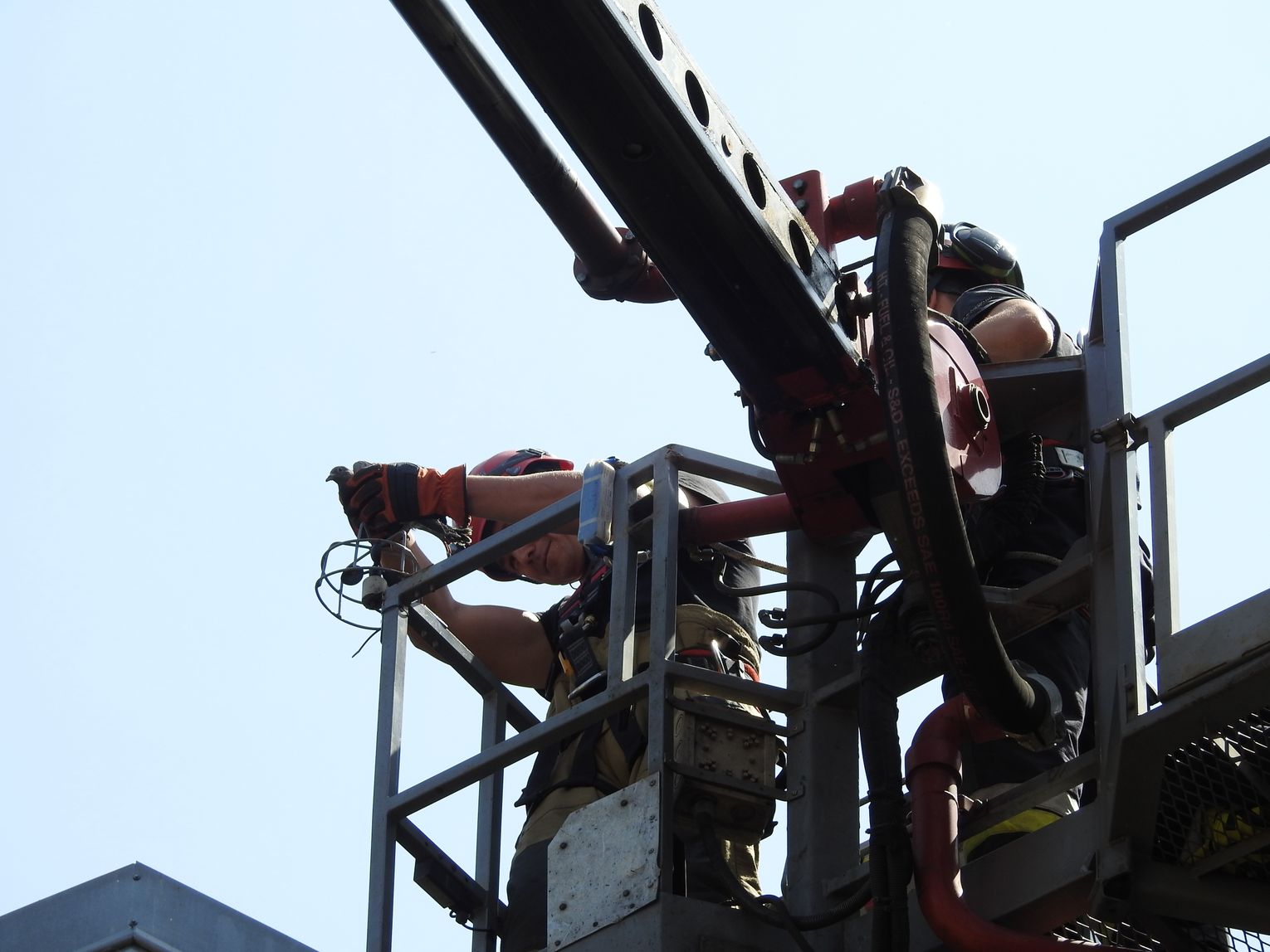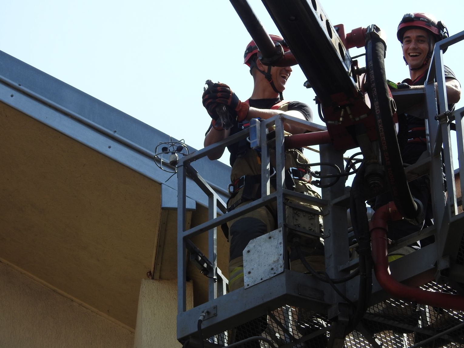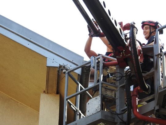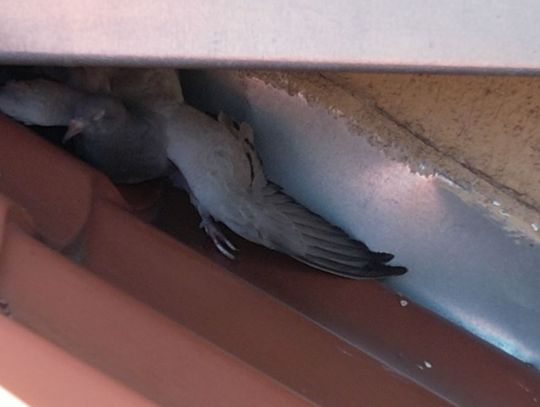 Tuż przed godziną 13.00 służby zostały powiadomione o ptaku, który utknął między dwiema blachami - blachodachówką, a obróbką dachową bloku przy ul. Promiennej 3. Początkowo podejrzewano, że ptak wpadł do rynny, jednak po rozeznaniu w sytuacji okazało się, że nie była to typowa sytuacja. Gołąb ugrzązł jedną nogą i w/g relacji mieszkańców ptak musiał być uwięziony tam od wczoraj. Po ustaleniu przez strażaków lokalizacji, która na początku nie była oczywista wezwano pojazd z drabiną strażacką. Dwoje strażaków wyposażonych w odpowiednie zabezpieczenia uwolniło ptaka, który został wypuszczony. Gołąb odleciał kilka metrów i siadł na dachu. Cała akcja wzbudziła duże zainteresowanie mieszkańców.