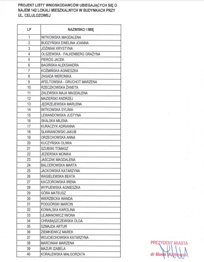 Ratusz opublikował dziś wstępną listę osób, które zakwalifikowały się do wynajmu mieszkań przy ulicy Celulozowej. Wcześniej w ramach MBM powstały tam cztery bloki. Obecnie budowane są dwa kolejne, w których będą znajdować się 144 mieszkania.