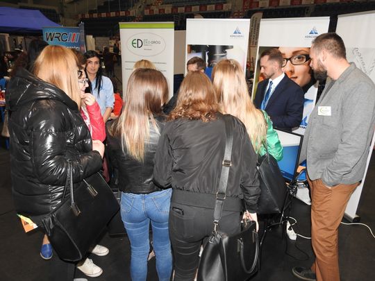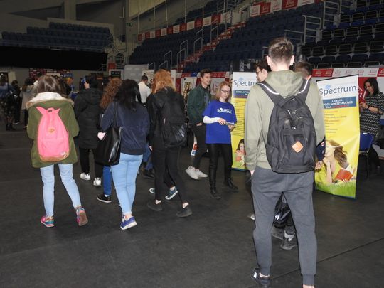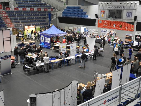 Dziś ostatni dzień X Włocławskich Targów Szkół, Pracy i Rzemiosła. Na Hali Mistrzów zebrały się firmy i instytucje poszukujące pracowników oraz reklamujące swoją działalność. Zwiedzających targi było dziś widocznie mniej, jednak i wśród nich pojawiała się młodzież rozważająca prezentowane oferty i poszukująca swojej przyszłości. Na hali pomieściło się 86 wystawców z różnych branż. Ponad 50 pracodawców reprezentowało branże przemysłowe, budowlane i usługowe. Obok nich pojawiły się także agencje pracy poszukujące pracowników dla szerokiego spektrum klientów. Organizatorom zależało na promowaniu rodzimych przedsiębiorców tak więc większości byli to pracodawcy z siedzibami na terenie Włocławka. (fot. Janusz Krysztop)