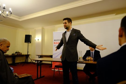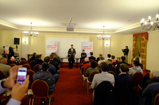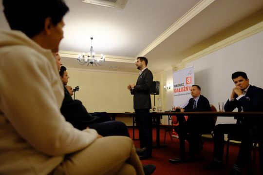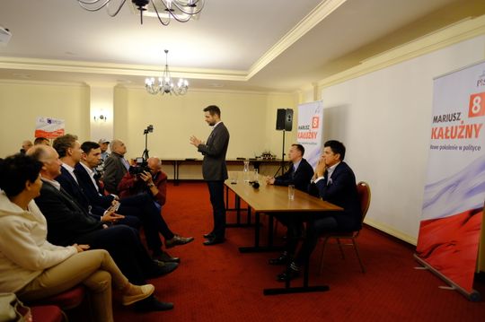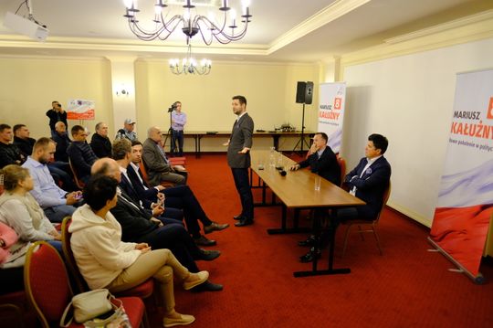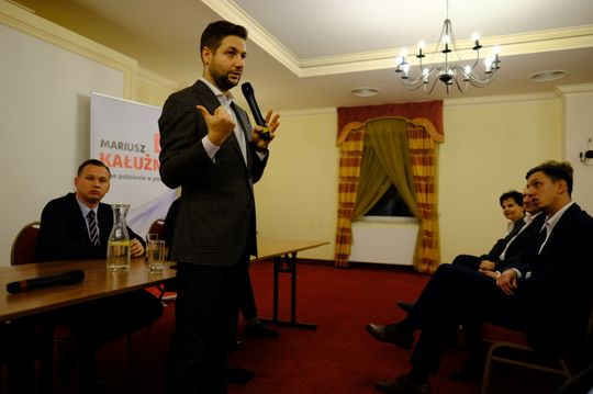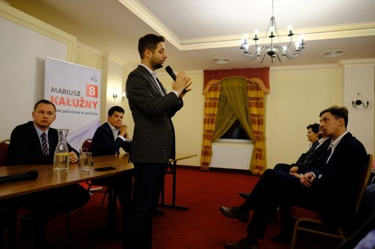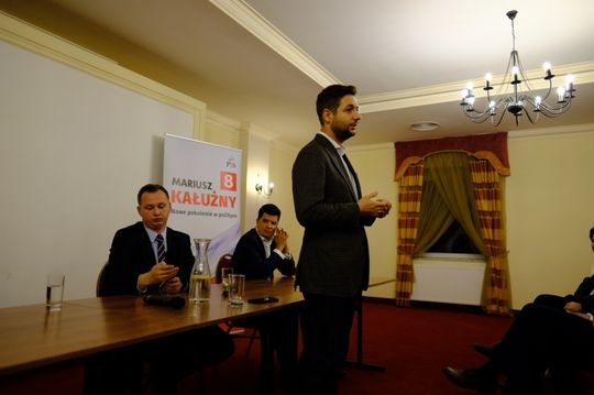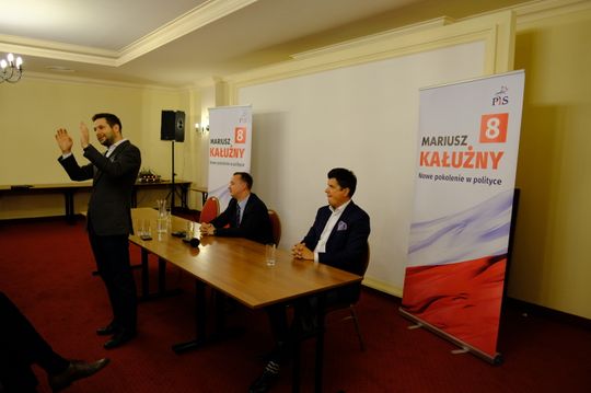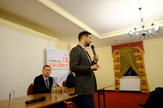 W piątek o godz. 20.00 w hotelu Aleksander odbyło się otwarte spotkanie z udziałem Patryka Jakiego, który promował kandydata do Sejmu RP z okręgu nr 5 Mariusza Kałużnego, nauczyciela religii z Chełmży, który od 2016 jest dyrektorem Centralnego Ośrodka Sportu w Warszawie. Na spotkaniu Patryk Jaki podnosił kwestie aborcji, zmiany polityki historycznej, podobnie jak prezes Kaczyński wspomniano o prowadzeniu dochodzenia przeciwko fake newsom. (fot.Agata Kurzępa)